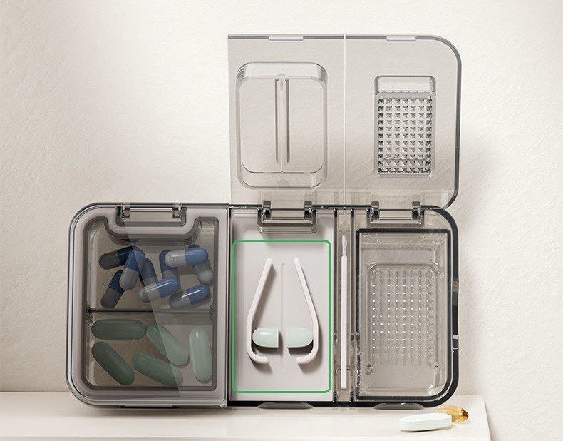 Легкая и компактная таблетница удобно помещается в сумке или кармане, что делает ее идеальной для использования дома и в поездках. Таблетницу легко чистить, что позволяет поддерживать высокий уровень гигиены и безопасности. Таблетница идеально подойдет для пожилых людей, людей с хроническими заболеваниями, а также для всех, кто принимает витамины или другие добавки. Это также отличное решение для заботливых родственников, которые хотят помочь своим близким в организации приема медикаментов.