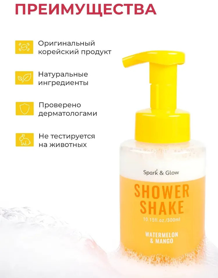 Spark & Glow Гель-шейк для душа с ароматом арбуза и манго «Shower shake watermelon&mango»