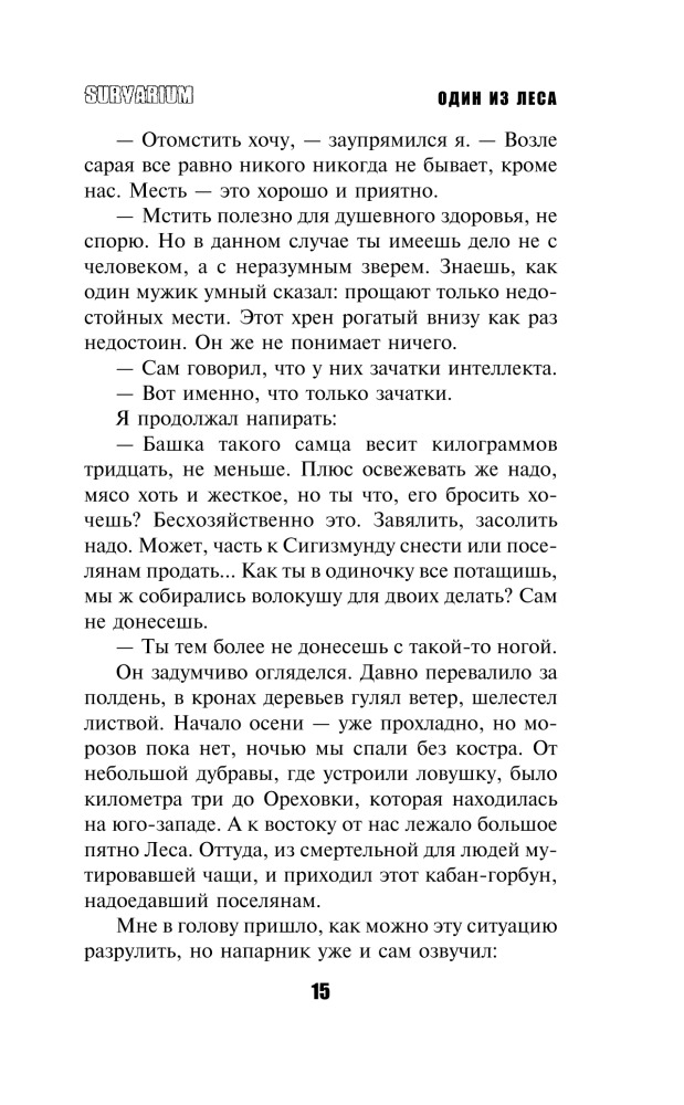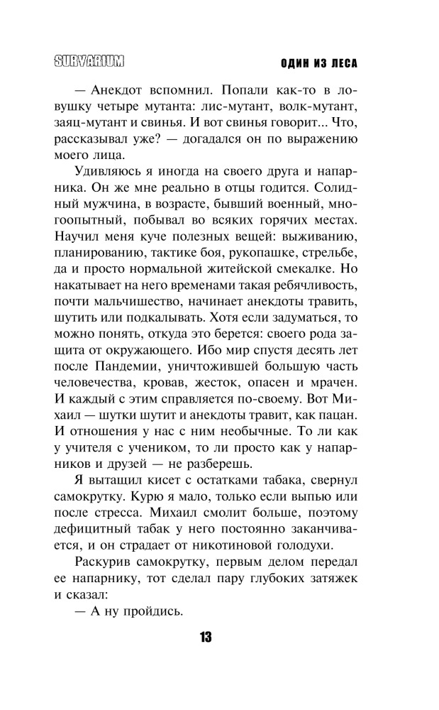 Один из лесаВ данный момент этот товар отсутствует в продаже. Возможно, у нас найдется аналогичный или похожий товар здесь. Серия: Проект Survarium Захватывающий остросюжетный роман-боевик представляет собой новеллизацию игры Survarium. В 21-м веке сама Земля вступила в схватку с человечеством, стремясь уничтожить его. На планете возникла чудовищная биоаномалия – Лес с его мутировавшими растениями и животными. Мало кому удалось выжить в новом мире свирепых мутантов и аномальной природы. Люди сбиваются в банды, кланы и группировки, которые соперничают в борьбе за то немногое, что осталось от разрушенной цивилизации. Главный герой романа, охотник Стас Логин, балансируя между жизнью и смертью, в одиночку сражается против банды варваров-кочевников и пытается разгадать тайну зловещего Полигона Смерти. |