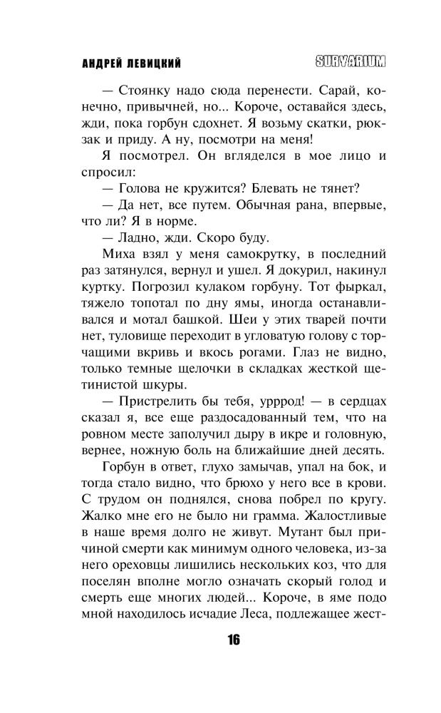 С легкостью узнается фирменный стиль Андрея Левицкого. Книга читается довольно легко и затягивает с самых первых строк. Советую прочитать всем любителям жанра постапокалиптики, в частности любителям "Метро 2033" и "Сталкер".