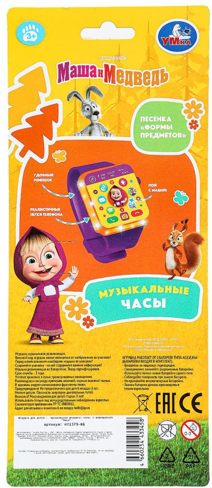 УМка Часы музыкальныеВ данный момент этот товар отсутствует в продаже. Возможно, у нас найдется аналогичный или похожий товар здесь. Серия: Маша и Медведь Музыкальные часы «Маша и Медведь» ТМ «УМка» станут прекрасным подарком для маленьких поклонников одноимённого мультсериала. Музыкальные часики сделаны по мотивам известного мультсериала, поэтому придутся по вкусу его поклонникам. К тому же, это не простые часы: нажимая на кнопки, можно послушать весёлую песенку и забавные звуки. Музыкальные часы ТМ «УМка» развивают: тактильные навыки, мелкую моторику, музыкальный слух и память. |