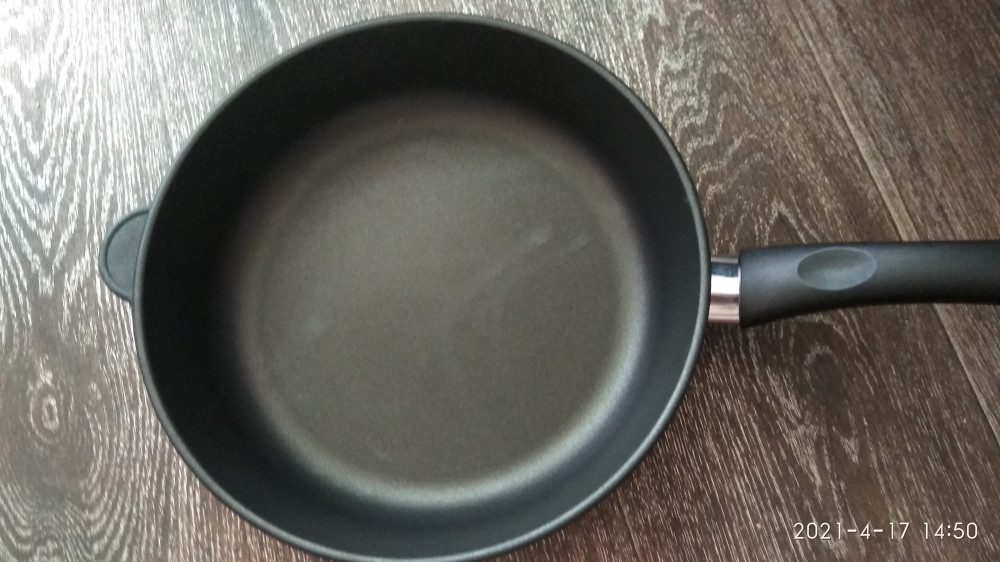 Отличная сковорода, пища не пригорает, готовить в ней - одно удовольствие. Плохо только, что крышку пришлось покупать отдельно.