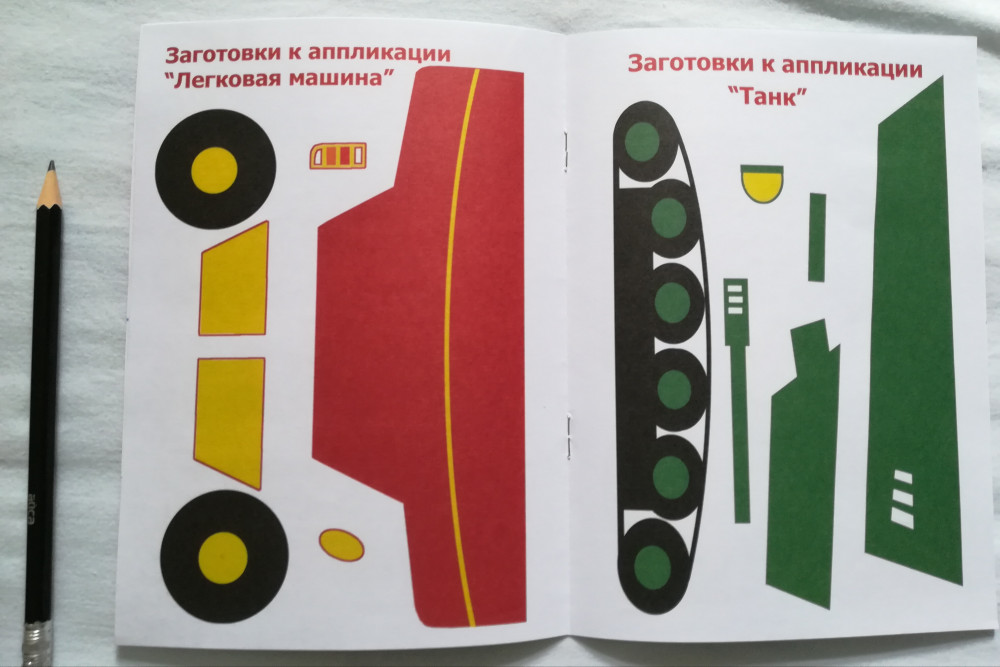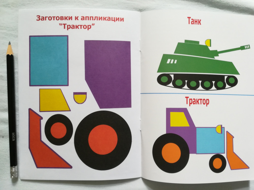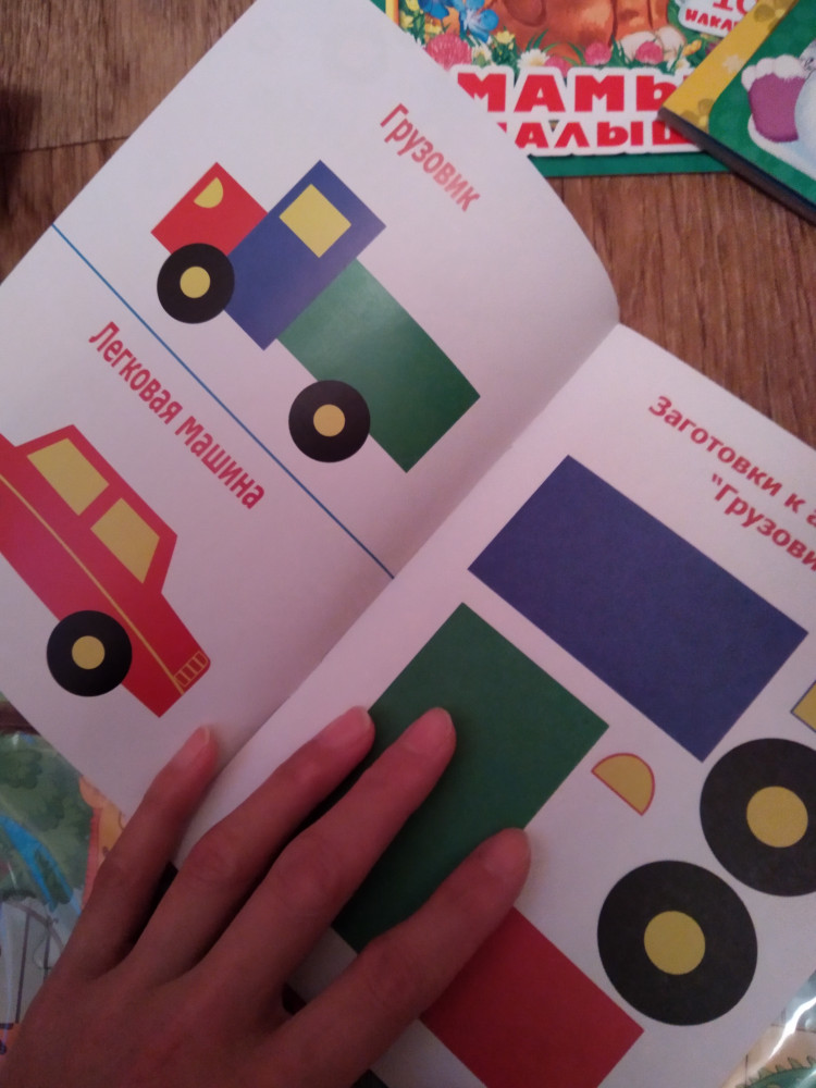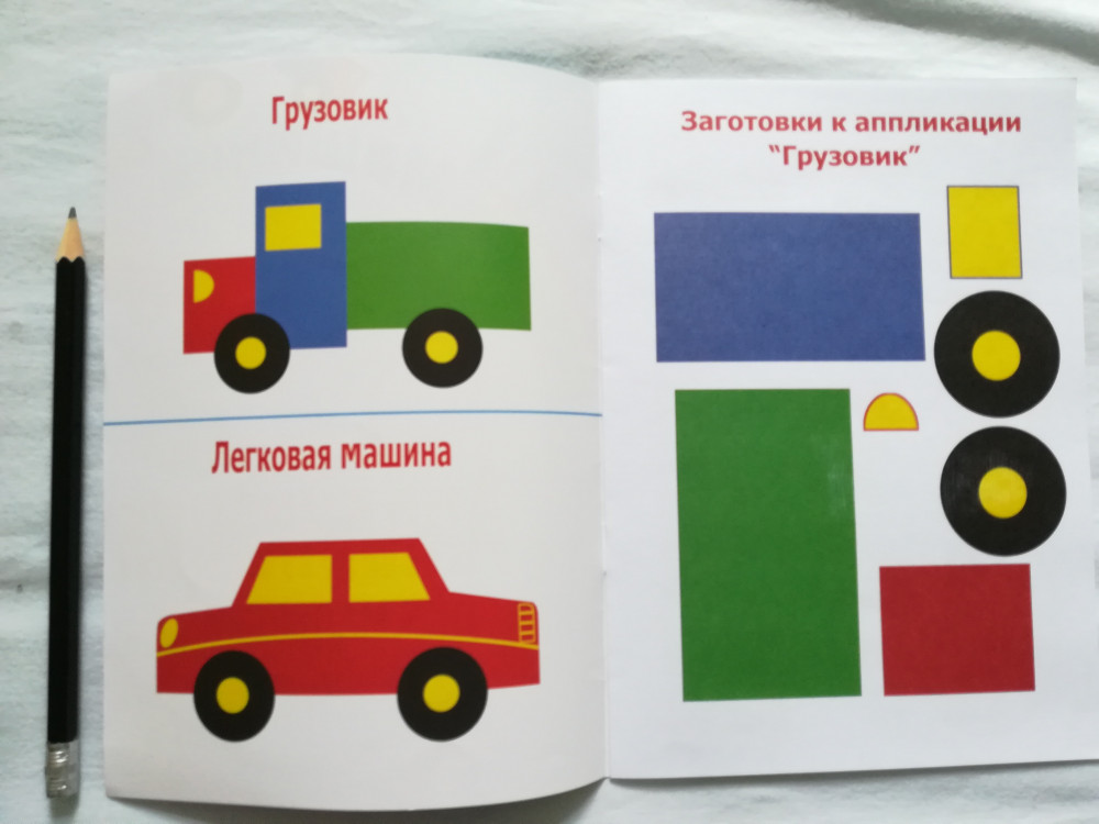 Очень понравилось. Жалею что взяла мало. Ребенок учится вырезать и наклеивать. Машинки сделаны в форме фигур.
