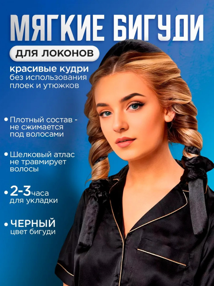 Бигуди для завивки кудрей являются модным современным трендом в индустрии красоты. Лента для волос выполнена из мягкого поролона и гладкой атласной ткани. Благодаря этому длинные волосы не травмируются во время завивки и сна, в отличие от использования плоек. Набор для укладки состоит из гибкой монобигуди, двух шелковых резинок и крабика. Валик подходит и для средней длины. Пряди следует накрутить по спирали вокруг бигуди и зафиксировать резиночками и зажимом сверху. Предварительно рекомендуется увлажнить волосы или нанести фиксатор для укладки. Как результат — шикарные крупные кудри и естественная волна. Ночные большие бигуди ободок — абсолютно безопасный аксессуар, который отличается отсутствием травматизации и легкостью в применении. Незаменимый атрибут для создания объемной прически на каждый день в домашних условиях. Степень закрученности завитков можно регулировать путем более плотного или свободного наматывания локона вокруг бигуди.