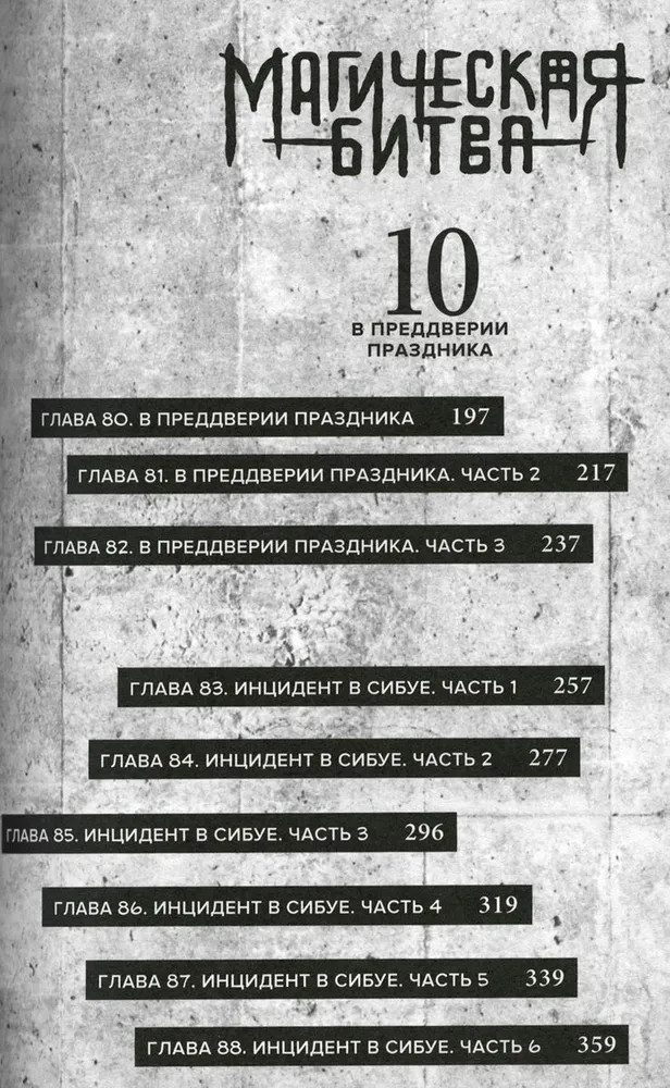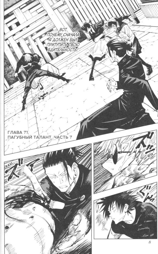 В восьмом томе пока Сатору Годзё находится в заключении, на одной из подземных станций Сибуи разгорается смертельный бой между Юдзи Итадори и Махито, проклятием особого уровня. Юноша изрядно вымотан физически и морально, в то время как проклятый дух полон сил: битва для него подобна веселой игре. На помощь Итадори уже спешат его товарищи-заклинатели, но успеют ли они вовремя, или эта долгая ночь унесет жизнь еще одного мага?.. |