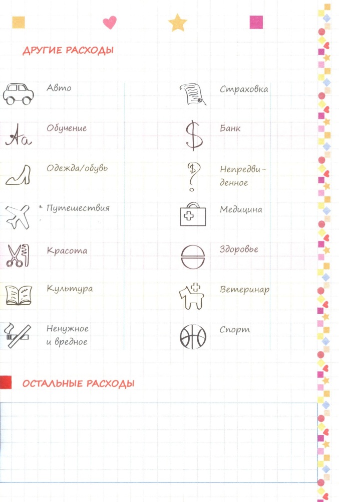 Давно искала что-то подобное для записи расходов и этот блокнот не разочаровал. Понравилось оформление, разлиновка страниц. Предусмотрены многие статьи расходов.