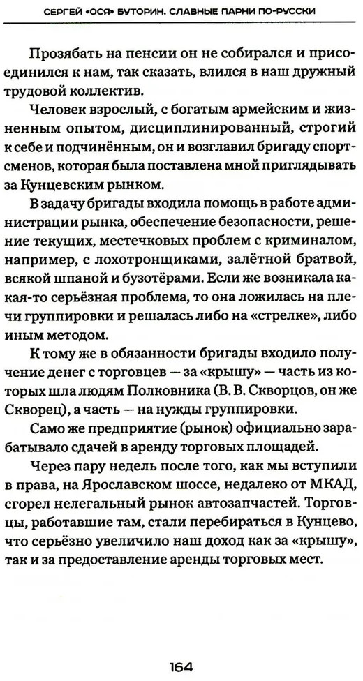 Споры об эпохе 90-х в России не утихают на протяжении десятилетий. Для одних они «лихие», для других «святые». Святые, для тех кто за несколько лет стал владельцем заводов, газет, пароходов. Лихие для тех, кто лишился всех своих накоплений, потерял работу, близких людей. Разгул наркомании и алкоголизма, кровавые криминальные войны. Автор не понаслышке знает историю российских криминальных войн и правдиво рассказывает о событиях тех лет. О себе, о друзьях, о людях, с которыми свела Сергея судьба. Он рассказывает правду, даже если это никто не прочтёт.Это ни в коем случае не исповедь. В книге нет вымысла, хотя могут быть и неточности, в том числе потому, что автор излагает исключительно свой взгляд на события и людей. Как бы то ни было, ни одно совпадение не случайно, ни одна неточность не намеренна, все лица реальные, хоть не все к настоящему моменту и живые.Автор не пропагандирует преступный образ жизни и никого не склонен идеализировать. Как говорится, если не можешь быть прекрасным примером, постарайся стать хотя бы ужасающим предостережением.Автор и издательство не призывают нарушать законодательство РФ, не пропагандируют и не романтизируют преступный образ жизни, а лишь показывает драматическую историю нашего Отечества, скрытую от глаз не посвященных. |