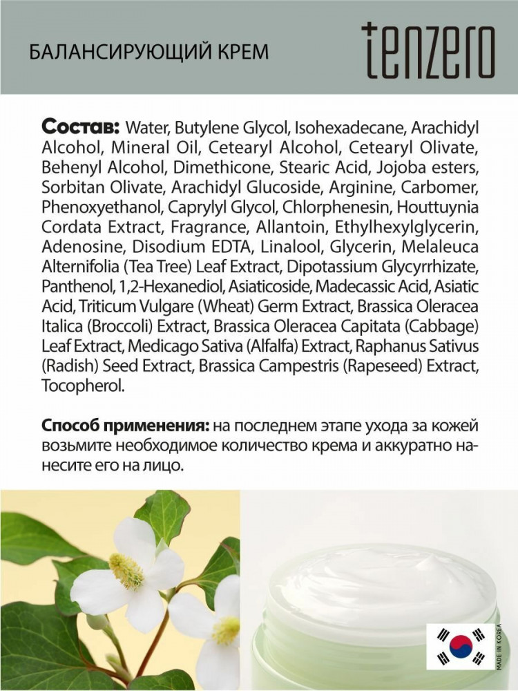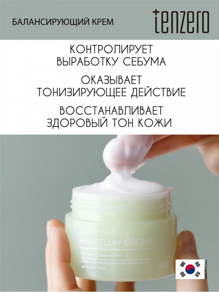 Tenzero Крем для лица с экстрактом хауттюйнии «Heartleaf Cream»
