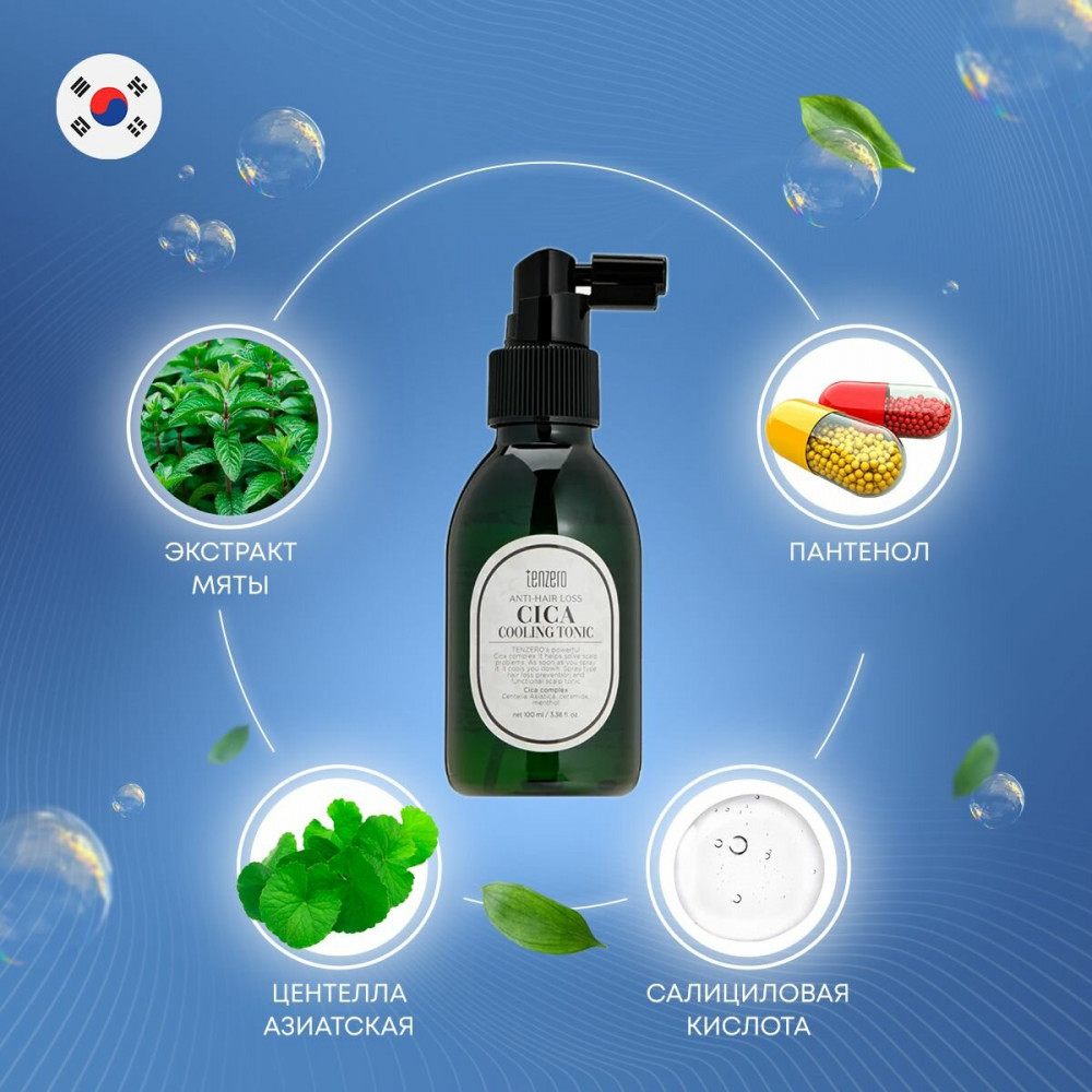 Tenzero Тоник для кожи головы с центеллой азиатской «Anti-Hair Loss Cica Cooling Tonic»В данный момент этот товар отсутствует в продаже. Возможно, у нас найдется аналогичный или похожий товар здесь. Тоник для кожи головы от выпадения волос имеет ряд полезных свойств. Он укрепляет кожу головы, питает корни волос, успокаивает и снимает дискомфорт. Кроме того, тоник приятно освежает и стимулирует рост волос. Он также помогает укрепить волосы у корней, мягко очищает поры, устраняет чрезмерную жирность и неприятный запах. Этот тоник не содержит искусственных ароматизаторов и красителей, которые могут негативно влиять на проблемную кожу головы. Он обеспечивает свежий аромат мяты и эвкалипта, которые снимают ощущение стянутости и липкости на коже головы. Продукт не требует смывания, легко наносится и не оставляет следов на волосах. Он снижает температуру кожи головы и придает освежающий аромат. |