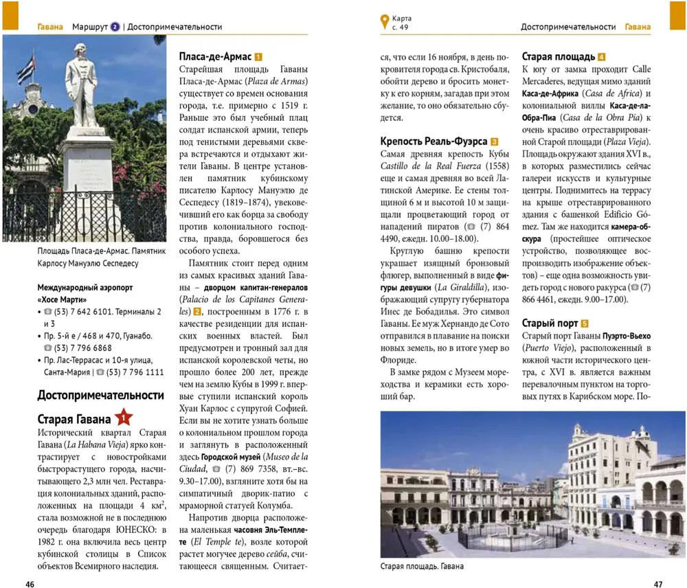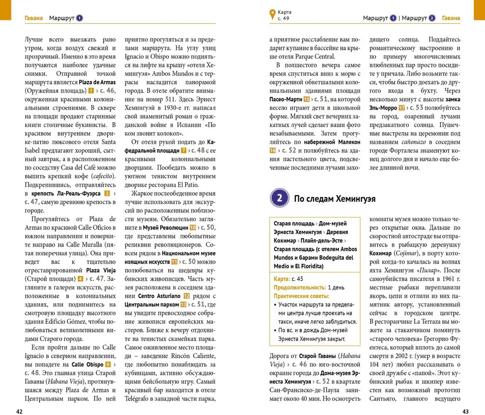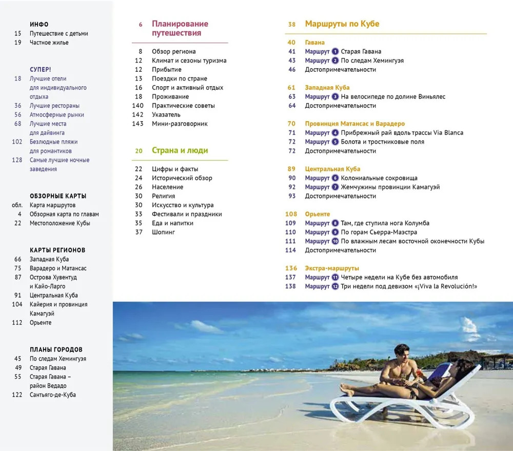 А еще вас ждут поля сахарного тростника Центральной Кубы, неповторимая атмосфера городка Сьенфуэгос, мавзолей глубоко почитаемого на Кубе Че Гевары, прогулки по горным хребтам Сьерра-Маэстра, в ущельях которого скрывались партизаны Фиделя Кастро, м многое другое: 12 маршрутов по всему острову — на выбор можно отправиться по любому. Каждый из них сопровождается отдельной картой. Для удобства пользователей путеводитель «Куба» дополнен большой подробной картой города (в накладном кармане на обложке). Помимо карт и проверенных авторских маршрутов с описанием достопримечательностей размещена и практическая информация — полезные ссылки, адреса, расписание работы музеев и общественного транспорта, схемы проезда. |