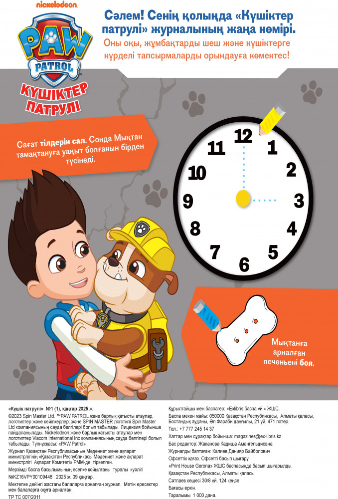 Nickelodeon Animation Studios Күшіктер патрулі № 1-2025В данный момент этот товар отсутствует в продаже. Возможно, у нас найдется аналогичный или похожий товар здесь. Қазақ тілінде шығатын «Күшіктер патрулі» журналы — құтқарушы-күшіктер тобымен бірге ерлік істер жасауға дайын батыл ұл балалар мен қыздарға арналған журнал! Әр шығарылымда: қызықты тапсырмалар, басқатырғыштар, саяхат ойындары, постер. Балаларға ойын мен оқуды бір жинақта біріктіретін қолжетімді әрі сапалы сыйлық. |