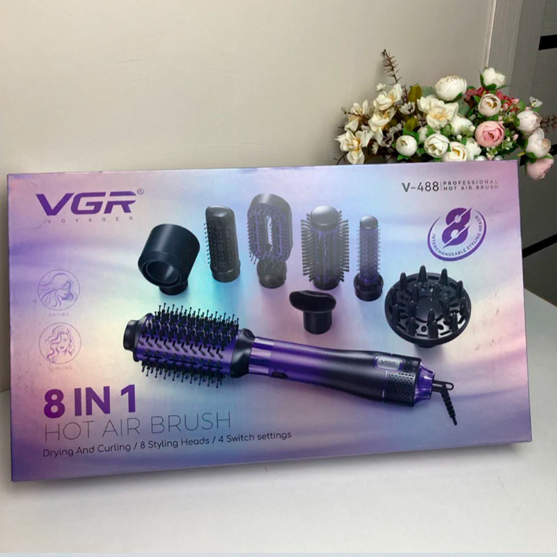 Фен для волос VGR V-488 Professional Hot Air Brush — это универсальный инструмент для укладки, предназначенный как для сушки, так и для укладки волос. VGR V-488 Professional Hot Air Brush — это универсальный инструмент для укладки, предназначенный как для сушки, так и для укладки волос. Благодаря мощному двигателю, нескольким насадкам для укладки и регулируемым настройкам температуры/скорости он предлагает гибкость для создания различных причесок, включая прямые, волнистые и вьющиеся волосы. Этот продукт оснащен 8 различными головками для укладки, поворотным на 360 градусов шнуром питания и большим двигателем для быстрой сушки.