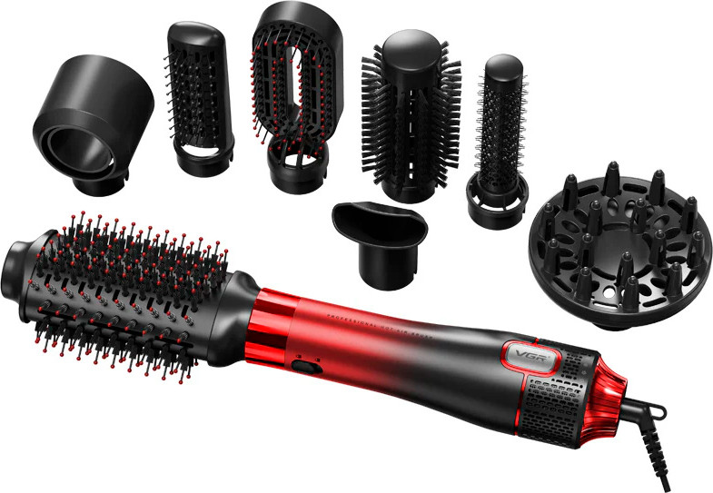 Фен для волос VGR V-488 Professional Hot Air Brush — это универсальный инструмент для укладки, предназначенный как для сушки, так и для укладки волос. VGR V-488 Professional Hot Air Brush — это универсальный инструмент для укладки, предназначенный как для сушки, так и для укладки волос. Благодаря мощному двигателю, нескольким насадкам для укладки и регулируемым настройкам температуры/скорости он предлагает гибкость для создания различных причесок, включая прямые, волнистые и вьющиеся волосы. Этот продукт оснащен 8 различными головками для укладки, поворотным на 360 градусов шнуром питания и большим двигателем для быстрой сушки.