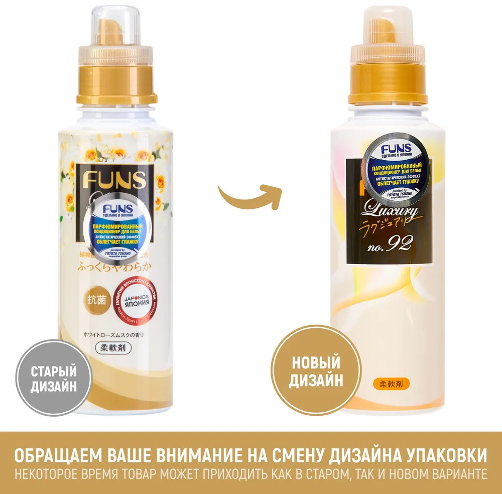 Funs Кондиционер для белья с антибактериальным эффектом и ароматом белой розы и жасмина №92