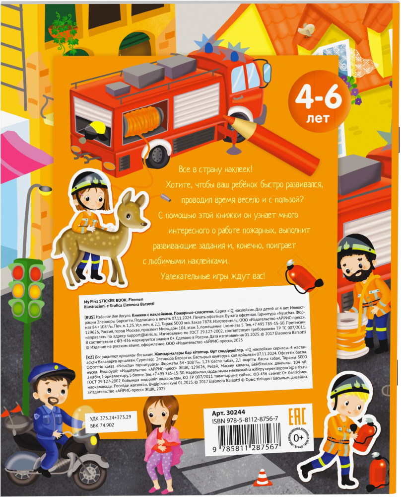 💳 Оплатить за товар можно при получении 🇰🇿 Есть бесплатная доставка по Казахстану от 1 дня 🎁 Копите бонусы с каждой покупки Серия: Книжки с наклейками С помощью этой книжки ребёнок узнает много интересного о профессии пожарного. Выполняя игровые задания, он будет искать отличия в рисунках, проходить по запутанным лабиринтам, дорисовывать и раскрашивать картинки. Книга содержит 70 наклеек. На специальном развороте их можно расположить где угодно и создать свою неповторимую картину. Книжку удобно брать в дорогу или на отдых. |
