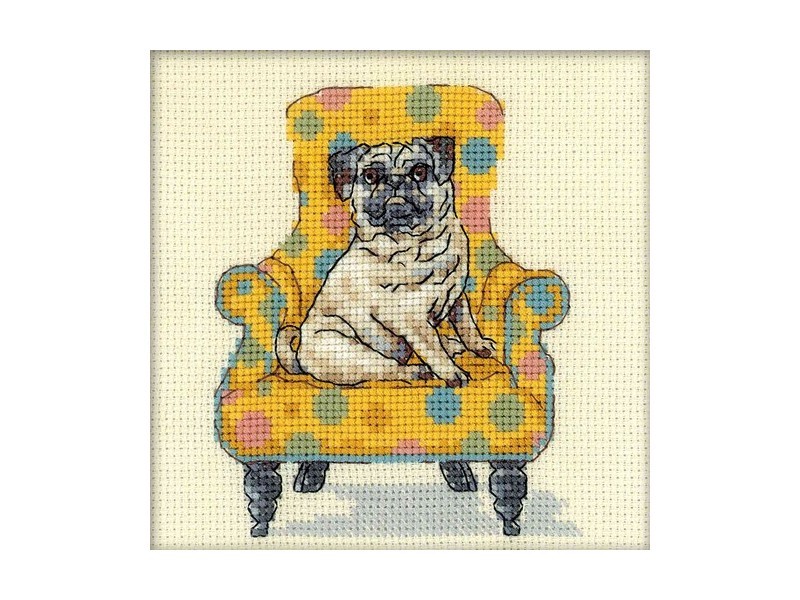 Мулине ДМС, качественная иголка и милая схемка мопса, делают процесс вышивки приятным.