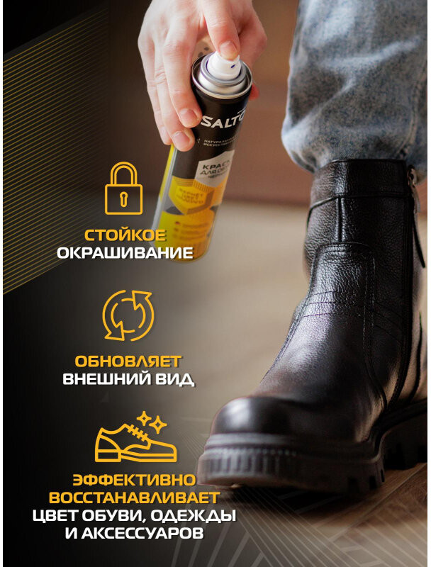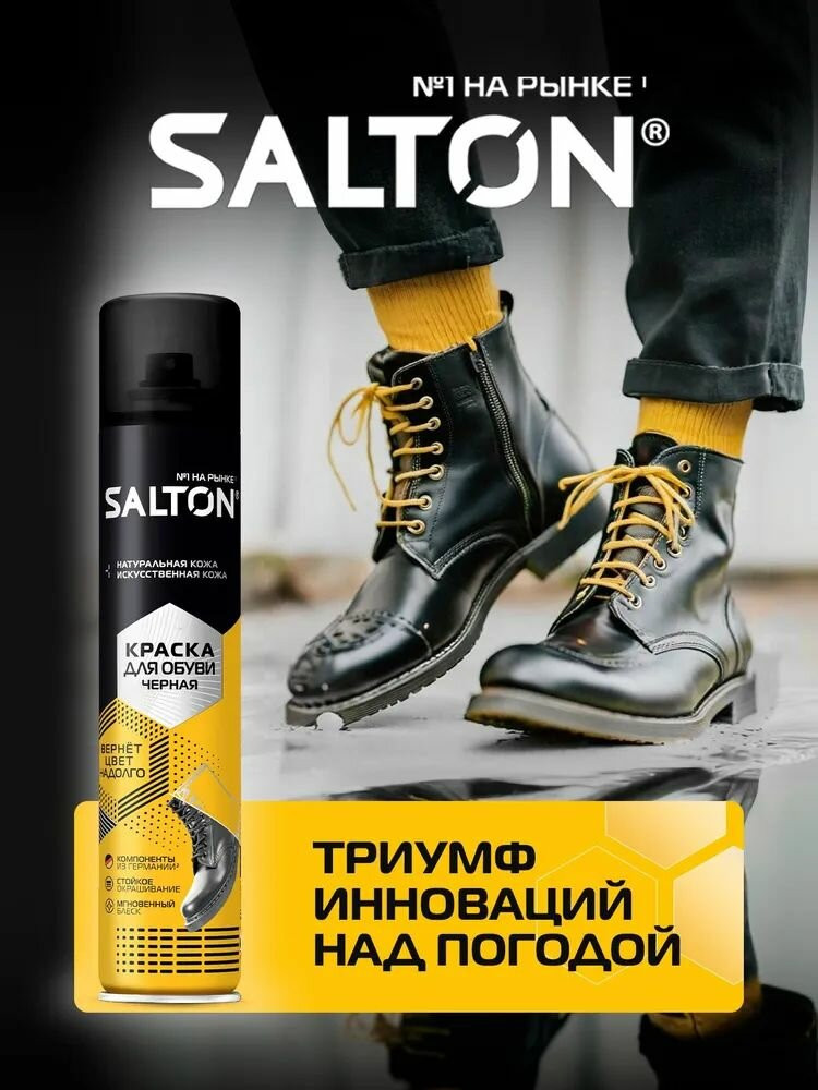 Краска Salton — это не просто аксессуар для обуви, это мощный инструмент для создания неповторимого стиля. Она прекрасно сочетается с любым типом обуви, будь то классическая пара туфель, спортивные кроссовки или даже аксессуары для обуви. Благодаря простому в использовании спрею, вы сможете легко и быстро нанести краску на любую поверхность, без размытия или складок. Краска Salton — это не только стиль и качество, но и уход за вашей обувью. Она защищает поверхность обуви от повреждений, сколов и потертостей, придавая ей долговечность и сохраняя первоначальный вид даже после многократного использования. Благодаря нашей краске, вы сможете наслаждаться вашей обувью гораздо дольше, экономя время и деньги на постоянной замене изношенных моделей. Наша краска позволит вам сделать вашу обувь идеальной и безупречной, покрывая поверхность обуви словно жидкая кожа черная. Она подходит для натуральной кожи, искусственной кожи, спилка и экокожи и придает легкий блеск, который придает дополнительную глубину и элегантность. Удобный распылитель позволяет равномерно и бесконтактно распределить краску по поверхности обуви, одежды или аксессуаров. Краска для гладкой кожи Salton Standart подходит как для натуральной, так и для искусственной кожи.
