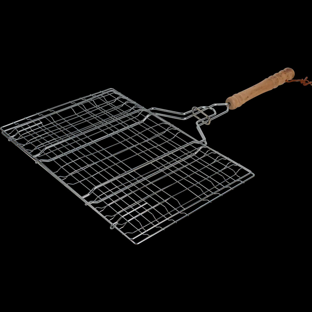 💳 Оплатить за товар можно при получении 🇰🇿 Есть бесплатная доставка по Казахстану от 1 дня 🎁 Копите бонусы с каждой покупки Прижимная решетка-гриль от бренда Дача превратит барбекю на свежем воздухе в сплошное удовольствие! Благодаря компактному размеру 22×35 см — туристическую решётку также можно взять с собой в поход или кемпинг. Походная решетка, в отличие от шампуров, избавляет от процесса нанизывания и способствует равномерной прожарке еды. На ней можно приготовить мясо, рыбу, овощи, грибы, сосиски, колбаски и стейки. Решетка на мангал изготовлена из высококачественной нержавеющей стали с антипригарным покрытием — такой материал гарантирует изделию длительный срок эксплуатации и защиту от коррозий. Специальные ограничители надежно фиксируют запорное кольцо в закрытом положении и предохраняют решетку от случайных раскрытий. Эргономичная и удобная для обхвата деревянная ручка почти не нагревается и предохраняет руки от ожогов, помогая также легко переворачивать саму решетку. Перед применением необходимо сдвинуть защитное кольцо к рукоятке. Переворачивать решетку во время жарки по мере необходимости. |