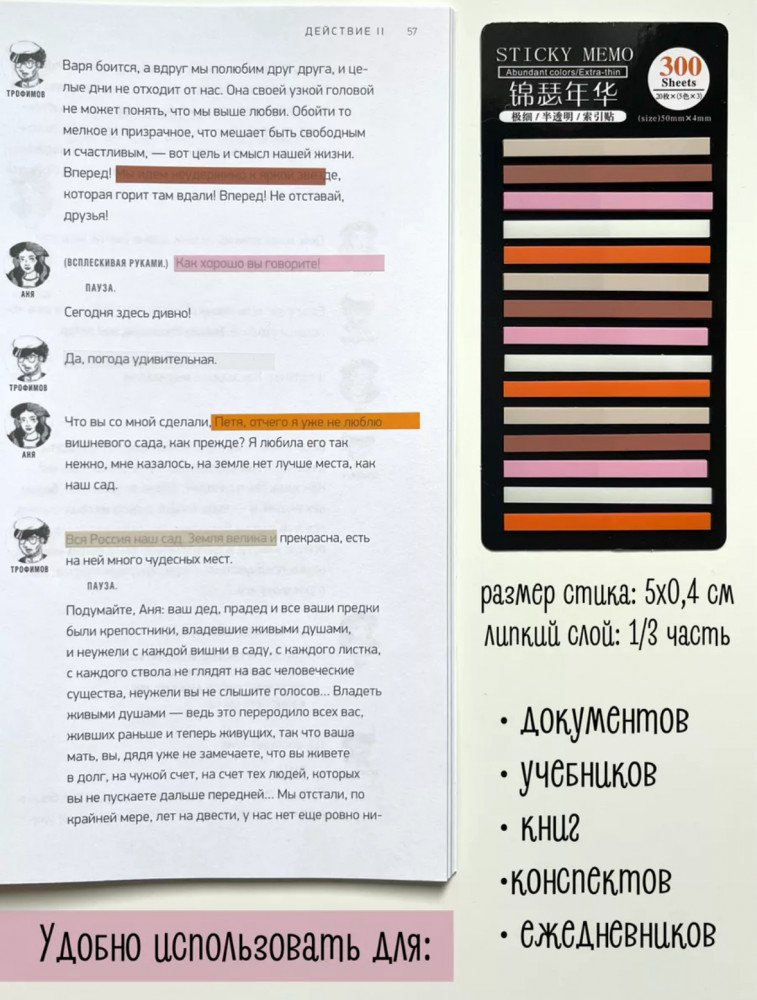 Удобные стикеры. Полупрозрачные, помогают при выделении необходимого абзаца