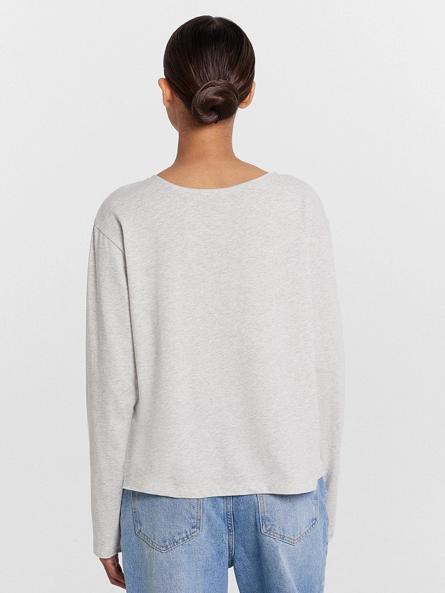Лонгслив пришёл серо-бирюзового цвета ,как-будто застиранный и поношенный. Цвет не соответствует фото , в люди не наденешь , только если дома носить