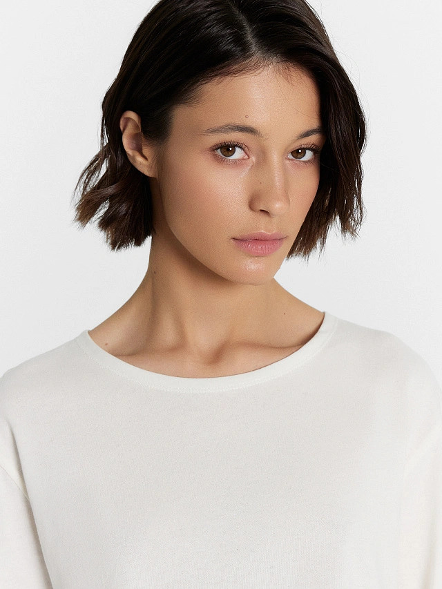Приятная к телу, при стирке не линяет, все швы остались на месте, хорошая базовая вещь за отличную стоимость.