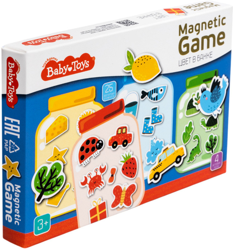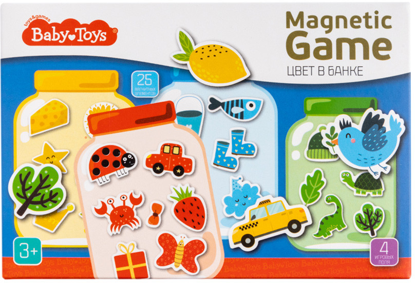 Магнитная игра «Цвет в банке» Baby Toys — это развивающая игра для самых маленьких, с помощью которой ребенок научится различать цвета. Игра с магнитными элементами от Baby Toys развивает у малышей мелкую моторику, аналитическое мышление, расширяет кругозор.