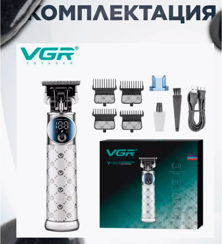 Комплектация: USB-кабель, масло для лезвий, щеточка для очистки, насадки регулировка длины — 1.5/3/4.5/6 мм, триммер для бороды.
