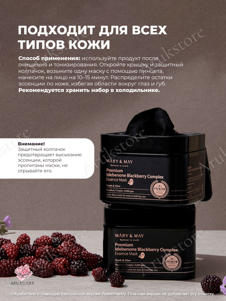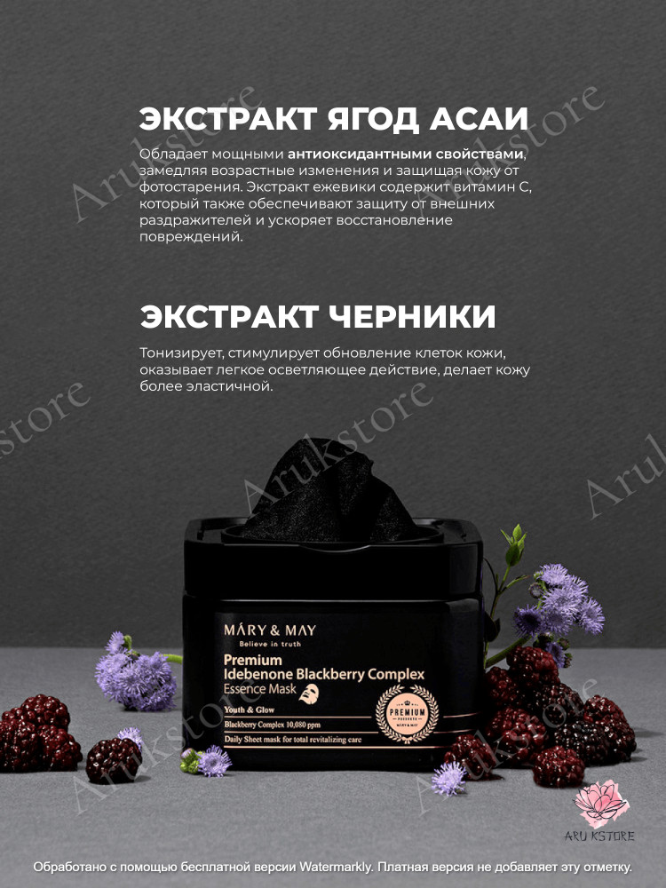 Mary&May Набор антиоксидантных масок для лица «Premium Idebenone Blackberry Complex Essence Mask»