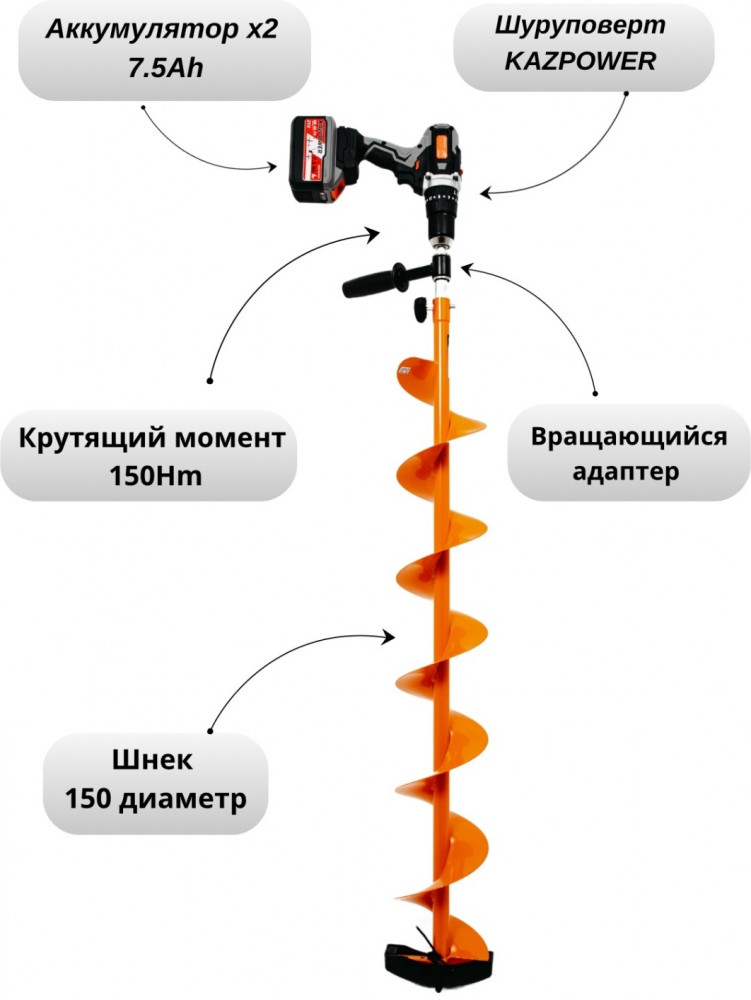 Шуруповерт KAZPOWER с двумя батарейками 7.5Аh является мощным инструментом, который может эффективно бурить лед. Его характеристики делают его идеальным выбором для различных задач, связанных с бурением в холодных условиях. Вот несколько ключевых особенностей, которые делают его подходящим для работы с льдом: