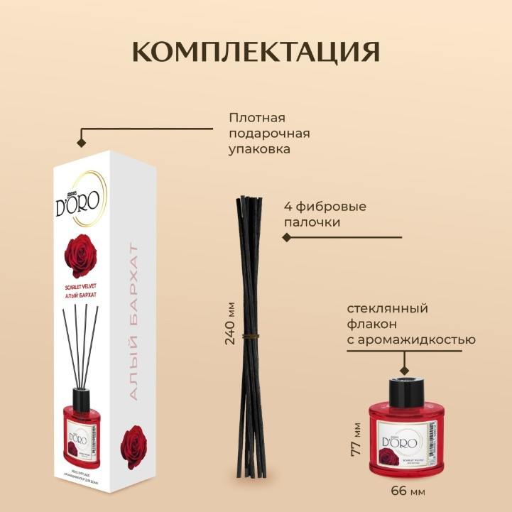 Наполните ваш дом насыщенным пудровым ароматом с лёгкими древесными нотами с помощью аромадиффузора с палочками «Алый бархат» от Gamma D’oro. Наш парфюм для дома создаст тёплую и уютную атмосферу, быстро распространяя свой глубокий и расслабляющий аромат для дома.