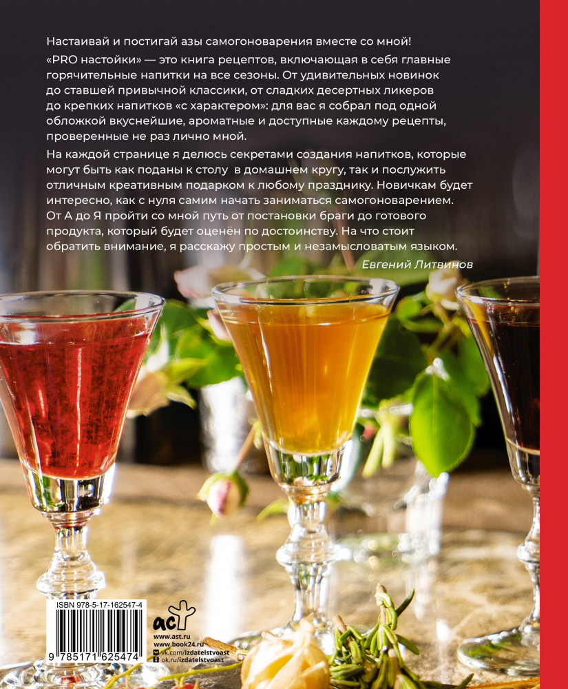 💳 Оплатить за товар можно при получении 🇰🇿 Есть бесплатная доставка по Казахстану 🎁 Копите бонусы с каждой покупки Серия: Дело вкуса Настаивай и постигай азы самогоноварения вместе со мной! «PRO настойки» — это книга рецептов, включающая в себя главные горячительные напитки на все сезоны. От удивительных новинок до ставшей привычной классики, от сладких десертных ликеров до крепких напитков «с характером»: для вас я собрал под одной обложкой самые вкуснейшие, ароматные и доступные каждому рецепты, проверенные не раз лично мной. На каждой странице я делюсь секретами создания напитков, которые могут быть как поданы к столу в домашнем кругу, так и послужить отличным креативным подарком к любому празднику. |