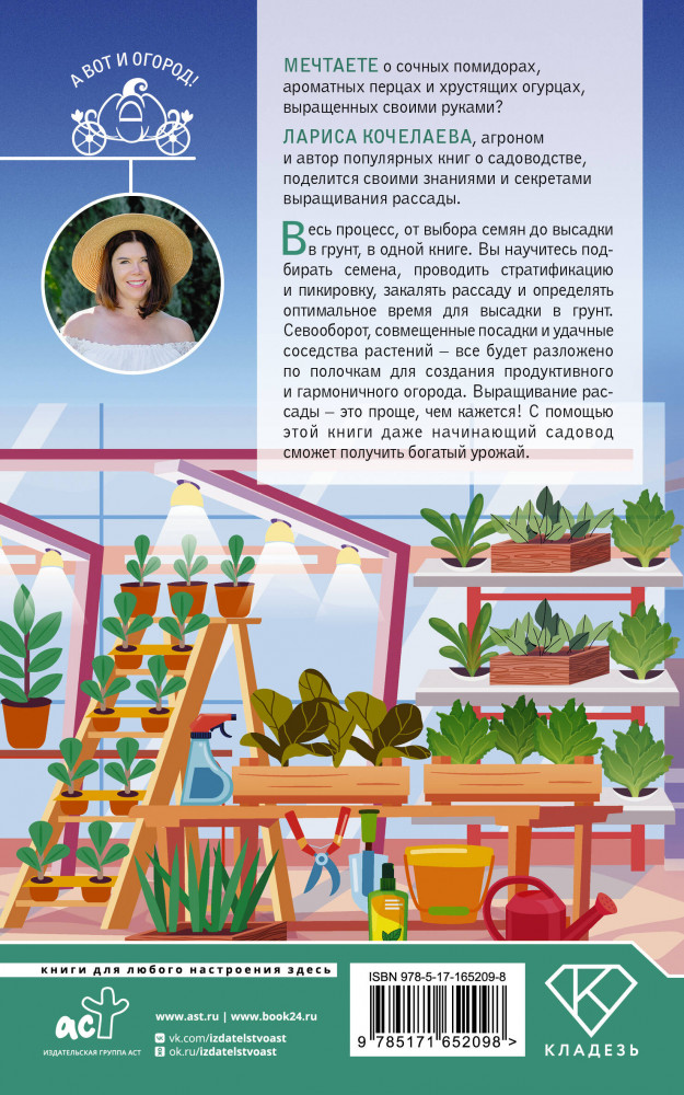 💳 Оплатить за товар можно при получении 🇰🇿 Есть бесплатная доставка по Казахстану 🎁 Копите бонусы с каждой покупки Серия: А вот и огород! Мечтаете о сочных помидорах, ароматных перцах и хрустящих огурцах, выращенных своими руками? Лариса Кочелаева, агроном и автор популярных книг о садоводстве, поделится своими знаниями и секретами выращивания рассады. Весь процесс, от выбора семян до высадки в грунт, в одной книге. На каждом шагу, от подбора культур до подготовки грядок, Вы получите подробные инструкции. Уникальные таблицы с характеристиками сортов, практические советы по уходу за рассадой, а также QR-коды на обучающие видео — всё это для Вашего максимального результата и удовольствия. Вы научитесь подбирать семена, проводить стратификацию и пикировку, закалять рассаду и определять оптимальное время для высадки в грунт. Севооборот, совмещенные посадки и удачные соседства растений — всё будет разложено по полочкам для создания продуктивного и гармоничного огорода. Выращивание рассады — это проще, чем кажется! С помощью этой книги даже начинающий садовод сможет получить богатый урожай. |