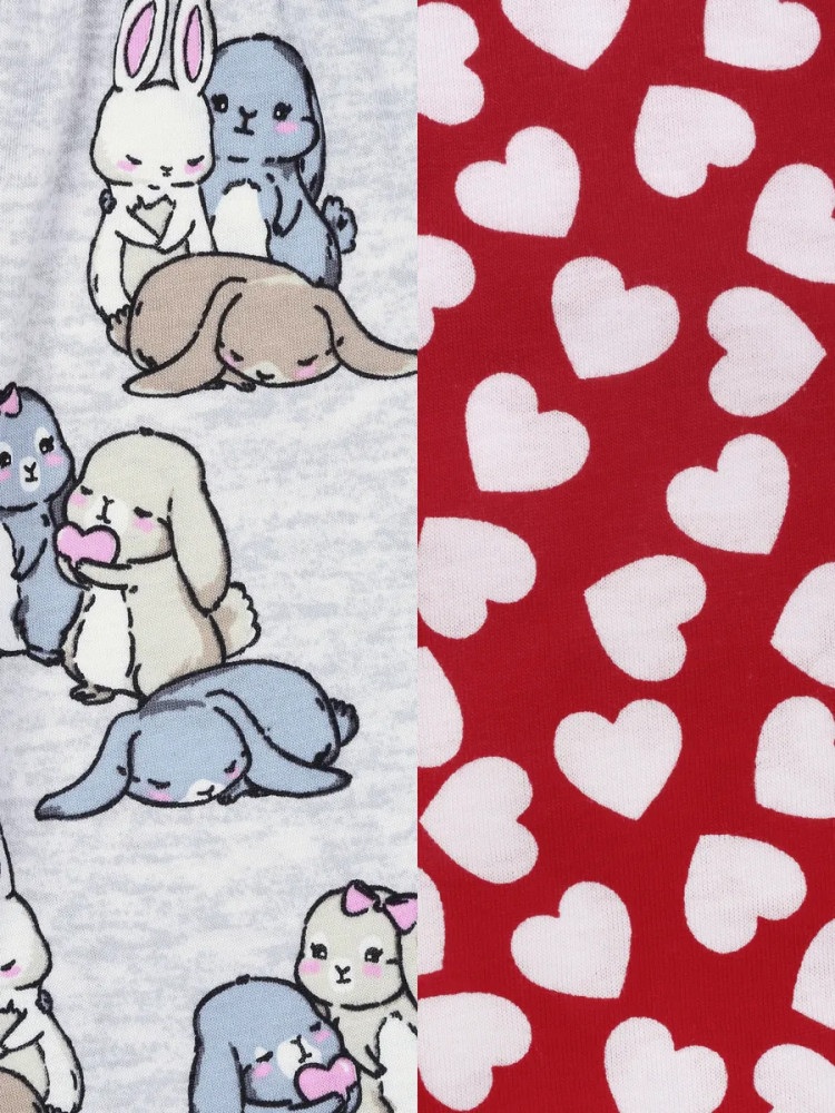 Название цвета: белые сердечки на красном+кролики с бантами на сером