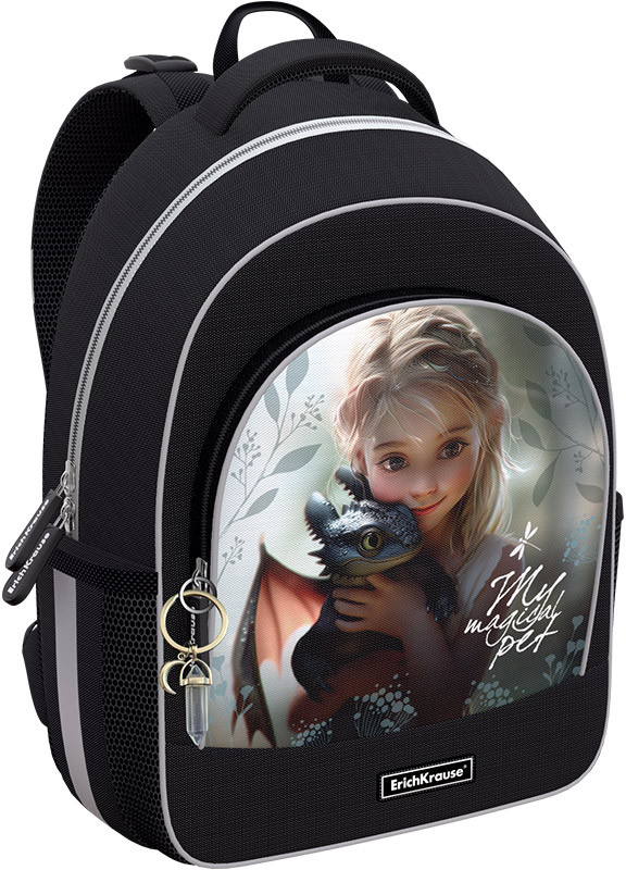 💳 Оплатить за товар можно при получении 🇰🇿 Есть бесплатная доставка по Казахстану от 1 дня 🎁 Копите бонусы с каждой покупки Серия: Magic Pet Этот рюкзак размера 39×28×14 см объёмом 15 л изготовлен из полиэстера 600D с полиуретановой пропиткой, что делает его устойчивым к износу и морозу. Внутри вместительное отделение с эластичным фиксатором для тетрадей и учебников формата А4+. Также есть мини-органайзер для мелкой канцелярии и карман на молнии. На дне — жёсткая откидная вставка. Снаружи фронтальный карман на молнии с плавным ходом, а также два боковых на резинке, куда можно положить бутылку с водой или зонтик. Рюкзак весит всего 520 г, что делает его одним из самых лёгких в своей категории. У модели эргономичная спинка ErgoLine® System с грудной перемычкой. Такая конструкция из мягких подушечек равномерно распределяет вес рюкзака и снижает нагрузку на позвоночник. Ткань спинки AirMesh «дышит», а воздушные каналы между ее подушечками препятствуют образованию влаги. Мягкие S-образные лямки не давят на плечи ребёнка, а грудная перемычка фиксирует положение рюкзака на теле. Светоотражающие элементы по всему периметру повышают безопасность в темноте. Модель также оснащена объёмной и удобной ручкой для переноски в руке. Крепления ручки и лямок усилены дополнительными швами из лавсановых нитей. Пластиковые ножки защищают от загрязнений и влаги. Рюкзак ErichKrause ErgoLine® — оптимальный выбор для занятий в школе. |