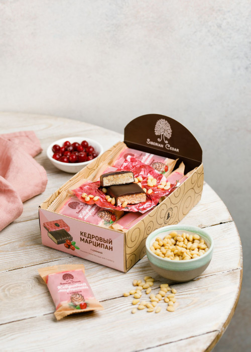 Сибирский кедр Батончик в шоколадной глазури «Кедровый марципан с клюквой»