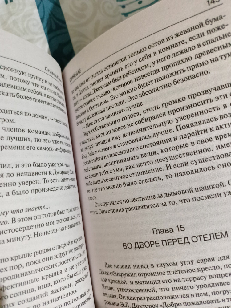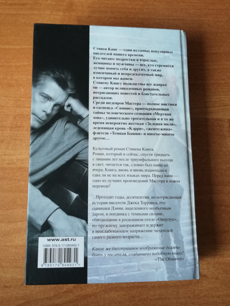 Обложка книги очень красивая и выполнена очень качественно. Сама книга читается на одном дыхании, очень легко и интересно написано и она умеет пугать. Те кто смотрел кино найдут в книге множество моментов которые почему-то были вырезаны. Думаю книгу оценят не только фанаты Кинга, но и просто любители хороших историй.