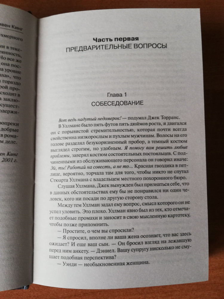 Начинала читать Кинга именно с этой книги, осталась в восторге. Сюжет романа захватывает с первых страниц, сложно оторваться, еще так получилось что начала читать в отпуске, в новом отеле про мистический отель :) рекомендую к чтению однозначно!