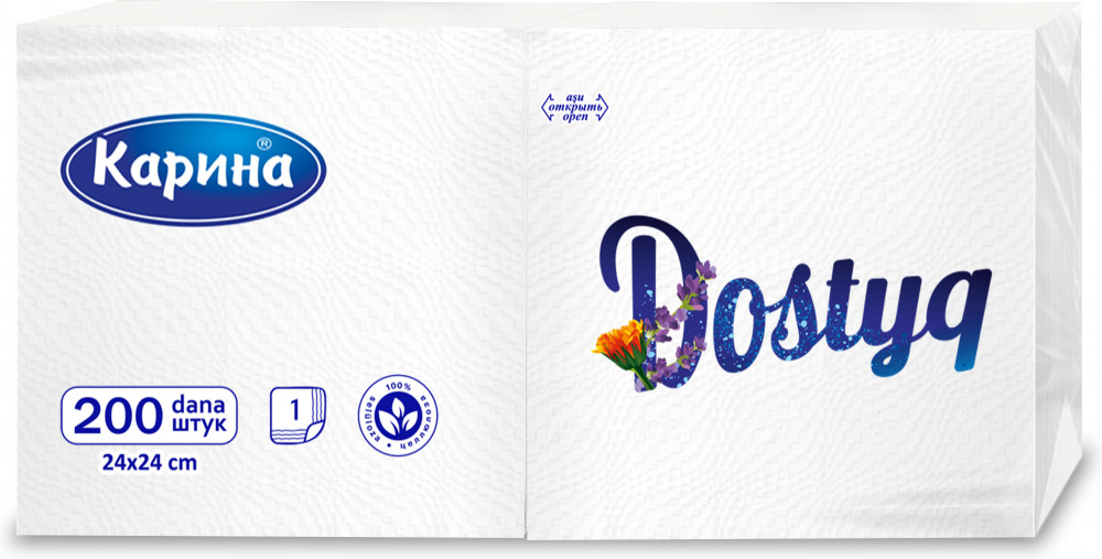 Карина Бумажные салфетки «Dostyk»В данный момент этот товар отсутствует в продаже. Возможно, у нас найдется аналогичный или похожий товар здесь. Бумажные салфетки однослойные, белые, с тиснением, влагопрочные, с большой впитывающей способностью. Производится из 100% целлюлозы, не имеет примесей, полностью безопасна для здоровья и прекрасно подходит для ежедневного использования. 200 штук в упаковке. |