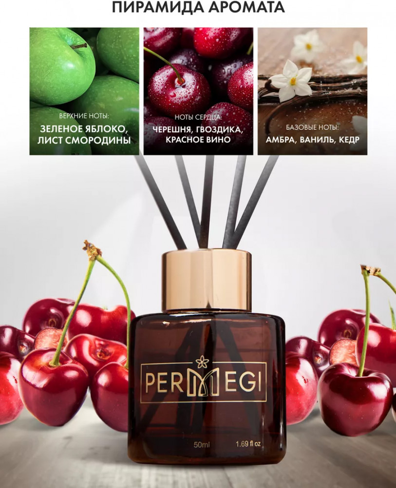 Permegi Набор аромадиффузоров «Хлопок & Вишня, мерло»