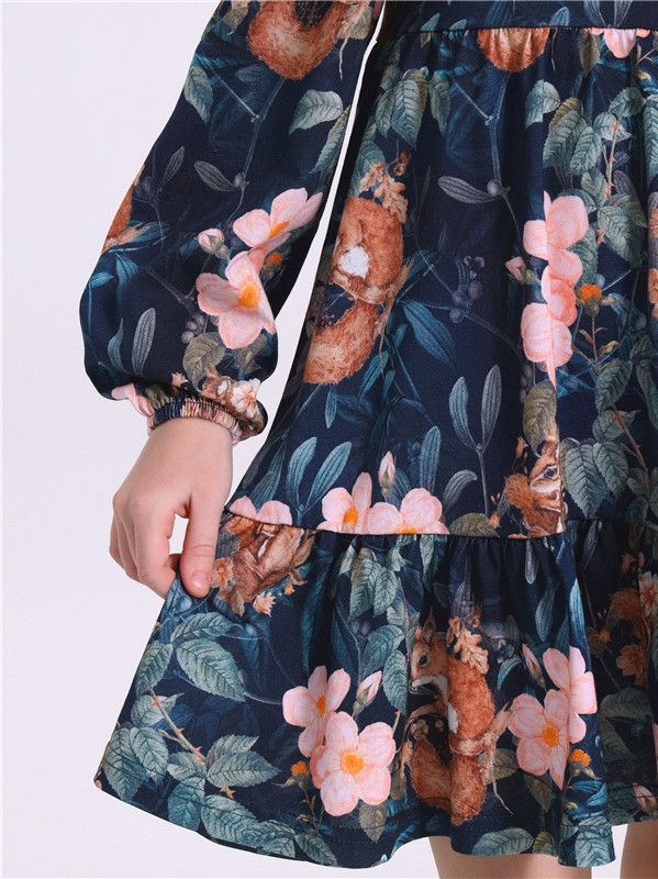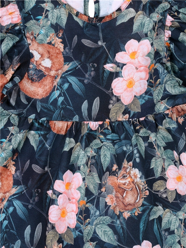 Название цвета: белочки и шиповник на темно-синем