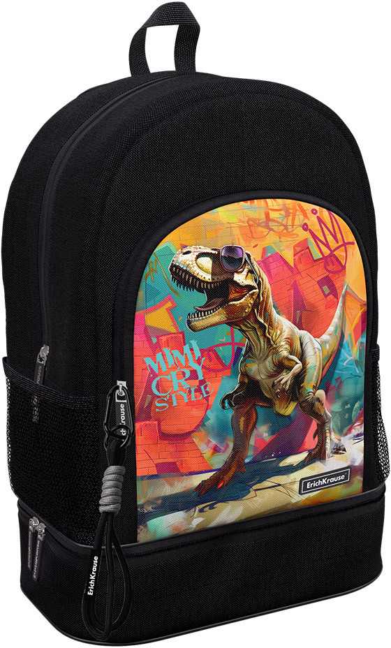 Erich Krause РюкзакВ данный момент этот товар отсутствует в продаже. Возможно, у нас найдется аналогичный или похожий товар здесь. Серия: Dino Art Модель ActiveLine BootsBag размером 44×30×17 см и объёмом 21 л изготовлена из износостойкого и водоотталкивающего полиэстера 600D. Внутри отделение формата А4, карман из сетки, сетчатый мини-органайзер и карман на молнии. Эти отсеки позволяют аккуратно разложить внутри различные аксессуары и другие личные вещи. Снаружи имеется большой фронтальный карман на молнии, а также пара боковых сетчатых карманов для вещей средних размеров, таких, как бутылка с водой. Отличительная особенность модели — специальный встроенный отсек для обуви. Это практично для школьных или спортивных занятий: сменную обувь можно положить прямо в рюкзак, нет необходимости в отдельном мешке. Технология AirMesh, использованная на спинке, делает рюкзак комфортным и «дышащим». Крепления лямок усилены дополнительным швами, что добавляет прочности, а механизм молний плавный и надёжный. Благодаря оригинальному дизайнерскому решению, рюкзак удобен как для школы, так и для повседневного использования. |