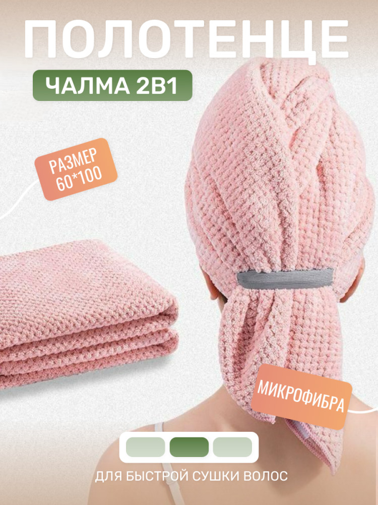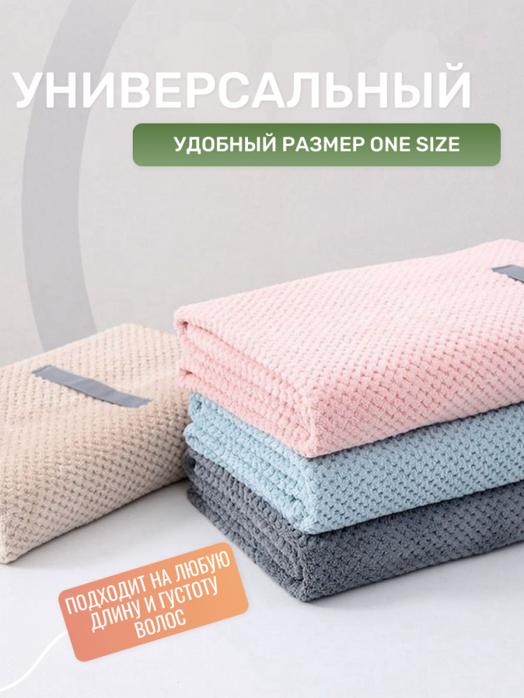 Тюрбан изготовленный из высококачественной микрофибры, он обладает исключительными впитывающими свойствами. Мягкая текстура материала не только быстро впитывает влагу, но и бережно относится к волосам, предотвращая их повреждения и ломкость.Тюрбан размером 100 на 60 см идеально подходит для длинных волос и создан для того, чтобы обеспечить вам максимальный комфорт и эффективность при сушке и уходе.