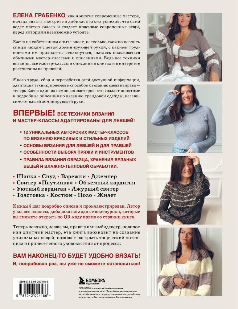 💳 Оплатить за товар можно при получении 🇰🇿 Есть бесплатная доставка по Казахстану от 1 дня 🎁 Копите бонусы с каждой покупки Серия: Звезды рукоделия. Энциклопедия инноваций Елена Грабенко на собственном опыте знает, насколько сложно освоить спицы людям с левой доминирующей рукой, с какими трудностями им приходится столкнуться, пытаясь пользоваться обычными мастер-классами и описаниями. Ведь абсолютно вся информация о техниках вязания, все мастер-классы и описания в книгах и в интернете рассчитаны на правшей. |