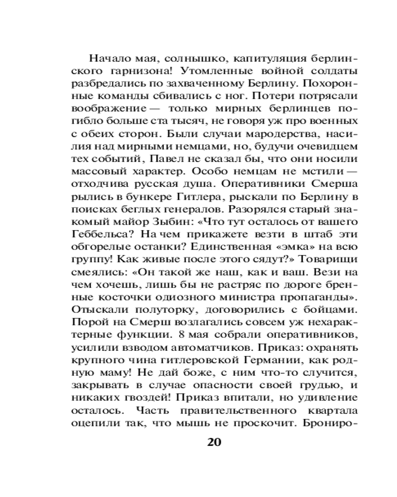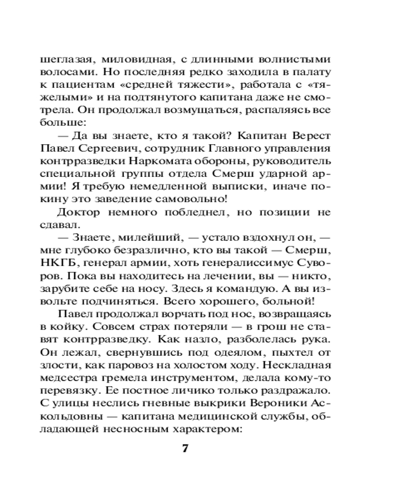 💳 Оплатить за товар можно при получении 🇰🇿 Есть бесплатная доставка по Казахстану от 1 дня 🎁 Копите бонусы с каждой покупки Серия: СМЕРШ в бою. Подвиги сталинских «волкодавов» Отступая под натиском советских войск, фашисты вагонами вывозят с оккупированных территорий награбленное добро. Один из таких составов, отправленный из Нижней Силезии, бесследно исчез где-то по дороге. Об этом стало известно советской контрразведке. Разыскать пропавшее золото поручено группе капитана СМЕРШа Павла Вереста. В ходе расследования выясняется, что состав ушел без охраны, нападению и бомбежке в пути не подвергался. Есть надежда, что груз цел. Верест отправляется по следу «золотого» эшелона и случайно находит старую боковую колею, ведущую в горы. То, что случилось дальше, опытный офицер, прошедший войну, не мог представить себе даже в страшном сне... |
