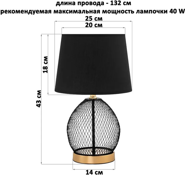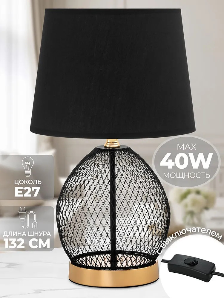 Elan Gallery Лампа настольнаяВ данный момент этот товар отсутствует в продаже. Возможно, у нас найдется аналогичный или похожий товар здесь. Настольная лампа с чёрным абажуром от Elan Gallery — это не только дополнительный источник света, но и стильное украшение интерьера спальни или гостиной. Фигурное основание светильника выполнено из металла, диаметр нижней части подставки 14 см. Размеры абажура: диаметр по верху 20 см, диаметр по низу 25 см, высота 18 см. Рекомендуется использовать лампочку мощностью не более 40 W (в комплект не входит). Работает от сети, необходимо наличие розетки. Длина провода 132 см. Имеет стильный дизайн: круглое основание в виде металлической сетки закреплено на подставке золотого цвета. Добавьте элегантности домашнему пространству! Декоративный светильник поможет создать уютную атмосферу в комнате или на кухне. Он подходит для использования в качестве настольной лампы и ночника, а также прикроватного светильника. Станет отличным предметом декора для вашего комода или журнального столика. Лампа прекрасно впишется в интерьер детской комнаты, создавая уютную атмосферу для школьника. Можно поставить на туалетный столик возле кровати для спокойного чтения книг перед сном. На даче ночной светильник поможет создать приятную атмосферу на террасе или в доме. Поставьте красивую лампу на стол или тумбочку, чтобы создать дополнительную подсветку в любом пространстве. Фигурная настольная лампа станет приятным подарком на любой праздник как взрослым, так и детям. |