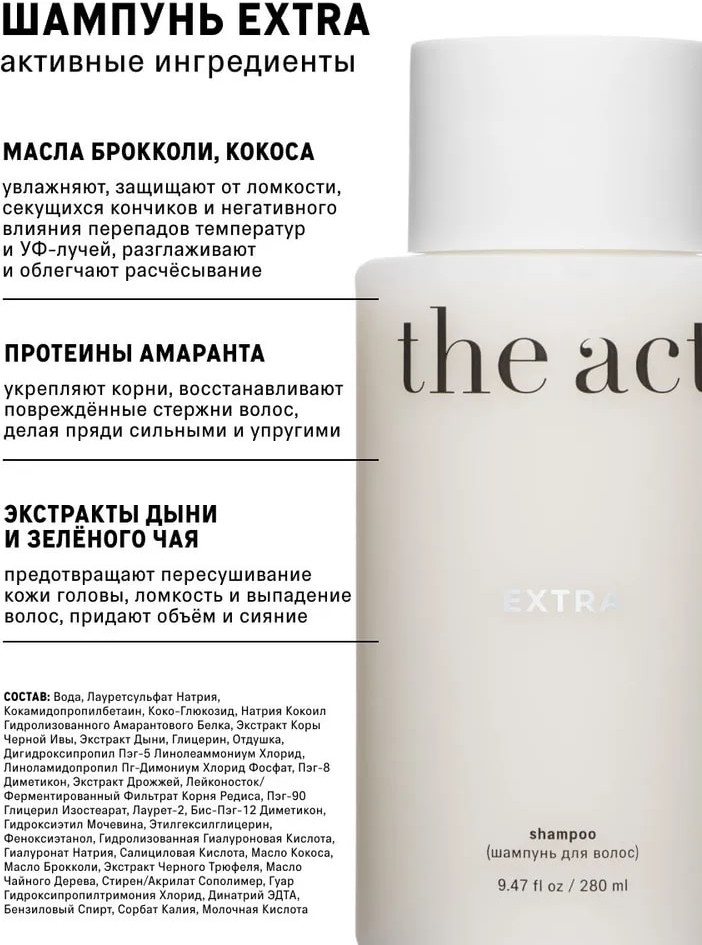 The Act Набор средств по уходу за волосами «Extra»В данный момент этот товар отсутствует в продаже. Возможно, у нас найдется аналогичный или похожий товар здесь. Волосы потеряли блеск и силу, стали тонкими и тусклыми, легко запутываются и быстро теряют объём? Значит им нужно качественное восстановление на основе масел и растительных протеинов. Шампунь и кондиционер для волос Extra гармонично дополняют друг друга, даря волосам бережное очищение без пересушивания и интенсивное восстановление. |