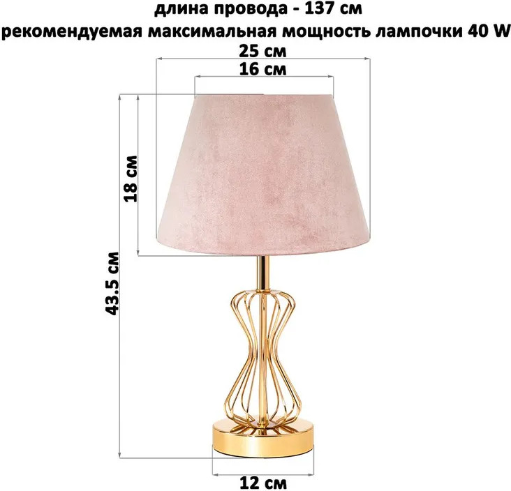 Elan Gallery Лампа настольнаяВ данный момент этот товар отсутствует в продаже. Возможно, у нас найдется аналогичный или похожий товар здесь. Настольная лампа с бархатным пастельно-розовым абажуром от Elan Gallery — это не только дополнительный источник света, но и стильное украшение интерьера спальни или гостиной. Фигурное основание светильника золотого цвета выполнено из металла, диаметр нижней части подставки 12 см. Размеры абажура: диаметр по верху 16 см, диаметр по низу 25 см, высота 18 см. Рекомендуется использовать лампочку мощностью не более 40 W (в комплект не входит). Работает от сети, необходимо наличие розетки. Длина провода 137 см. Имеет стильный дизайн. Сочетание бархатистой текстуры абажура с благородным оттенком добавит роскоши вашему интерьеру! Декоративный светильник поможет создать уютную атмосферу в комнате или на кухне. Он подходит для использования в качестве настольной лампы и ночника, а также прикроватного светильника. Станет отличным предметом декора для вашего комода или журнального столика. Лампа прекрасно впишется в интерьер детской комнаты, создавая уютную атмосферу для школьника. Можно поставить на туалетный столик возле кровати для спокойного чтения книг перед сном. На даче ночной светильник поможет создать приятную атмосферу на террасе или в доме. Поставьте красивую лампу на стол или тумбочку, чтобы создать дополнительную подсветку в любом пространстве. Фигурная настольная лампа станет приятным подарком на любой праздник как взрослым, так и детям. |