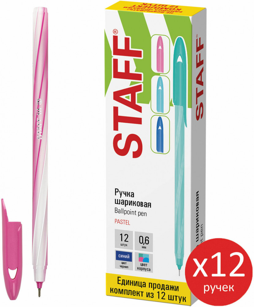 Staff Набор ручек шариковых «Candy Pastel»-20% +25 тонкий стержень не мажет удобная ручка недорогие