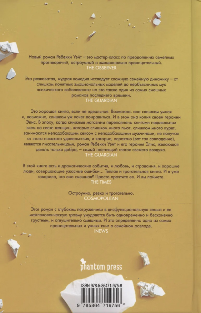💳 Оплатить за товар можно при получении 🇰🇿 Есть бесплатная доставка по Казахстану от 1 дня 🎁 Копите бонусы с каждой покупки Для Элис и Ханны, святой и грешницы, взросление — это испытание. Мать в воспитании придерживается подхода «разделяй и властвуй», а отец придерживается тактики отсутствия. Еще есть старший брат Майкл, чье неодобрение — сила, с которой нужно считаться. И наконец, есть семейная катастрофа, о которой никогда не говорят, но которая сформировала всех в семье. Став взрослыми, Элис и Ханна продолжают свой путь по дороге разочарований, их жизнь так не похожа на то, что они представляли в детстве. Им так хочется нащупать наконец совсем иной путь — не тот, где сплошь чертополох и колючки, колдобины и препятствия, а тот, где любовь, радость и смех. Но тропа жизни всё петляет и петляет меж диковатых пейзажей, пока не становится ясно: ничего не получится, пока они не разберутся в отношениях меж собой и с матерью. И либо всё починят, либо сожгут всё дотла. |