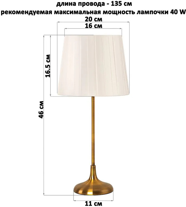 Elan Gallery Лампа настольнаяВ данный момент этот товар отсутствует в продаже. Возможно, у нас найдется аналогичный или похожий товар здесь. Настольная лампа с абажуром оттенка слоновой кости от Elan Gallery — это не только дополнительный источник света, но и стильное украшение интерьера спальни или гостиной. Основание золотого цвета выполнено из металла. Диаметр нижней части подставки 11 см. Размеры абажура: диаметр по верху 16 см, диаметр по низу 20 см, высота 16,5 см. Рекомендуется использовать лампочку мощностью не более 40 W (в комплект не входит). Работает от сети, необходимо наличие розетки. Длина провода 135 см. Благодаря стильному дизайну добавит элегантности вашему интерьеру! Декоративный светильник поможет создать уютную атмосферу в комнате или на кухне. Он подходит для использования в качестве ночника, а также прикроватного светильника. Станет отличным предметом декора для вашего комода или журнального столика. Прекрасно впишется в интерьер детской комнаты, создавая уютную атмосферу для школьника. Можно поставить на туалетный столик возле кровати для спокойного чтения книг перед сном. На даче небольшой ночной светильник поможет создать приятную атмосферу на террасе или в доме. Поставьте красивую лампу на стол или тумбочку, чтобы организовать дополнительную подсветку в любом пространстве. Фигурная настольная лампа станет приятным подарком на любой праздник как взрослым, так и детям. |